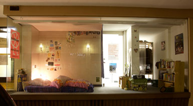 In der Ostermayrpassage, genauer einem Ladengeschäft aus den 50er Jahren, waren Zeichnng, Malerei Installation und Performance zu sehen, die teils für diesen Ort und die Ausstellung